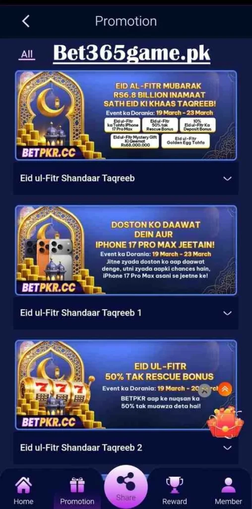 BET 365 APK is not just another earning platform; it’s a complete entertainment and income platform for Pakistani players. It has several key features, every feature designed to make your gaming experience better than others.